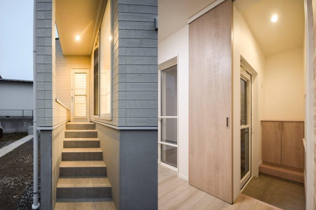 1階親世帯ゾーンのリビングに勝手口 玄関とは対角になる駐車場から最短距離で入室できます