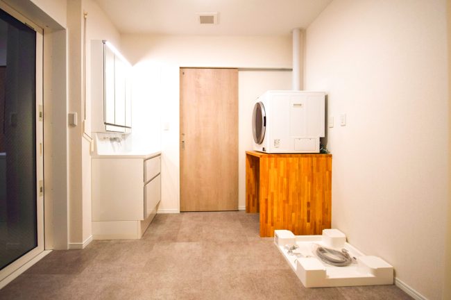 ランドリールーム兼洗面脱衣室 二世帯共有部分のため、ゆとりのある広さを持たせました